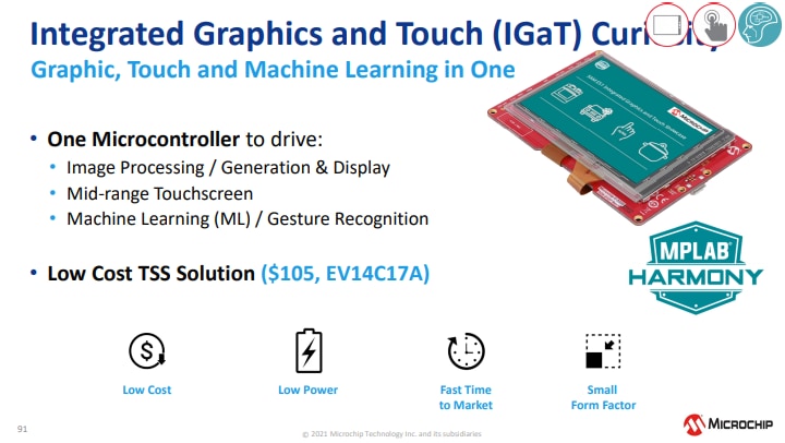Die Microchip Technology SAM E51 Integrierte Grafik and Touch (IGaT) Curiosity Evaluation Kit ist eine Hardware-Plattform zur Evaluierung des SAME51J20A Mikrocontrollers. Das Kit integriert einen kompletten Touchscreen, TFT-Grafiken und eine Touch-Oberfläche in einer Single-Chip-Lösung. Es wird von der MPLAB ® X Integrated Development Umwelt (IDE) unterstützt. Das Kit bietet einen einfachen Zugriff zu den Funktionen des SAME51J20A, um das Bauelement in ein kundenspezifisches Design zu integrieren. Das Integrierte Grafik- und Touch Curiosity Evaluierungskit enthält einen Onboard-Debugger. Für die Programmierung des SAME51J20A-Bauelements sind keine externen Tools erforderlich.Merkmale